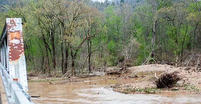 Right at the Arkansas/Missouri border in Mammoth Spring, a train collapsed on a bridge due to the floodwaters. In West Plains, large sections of the town were flooded.